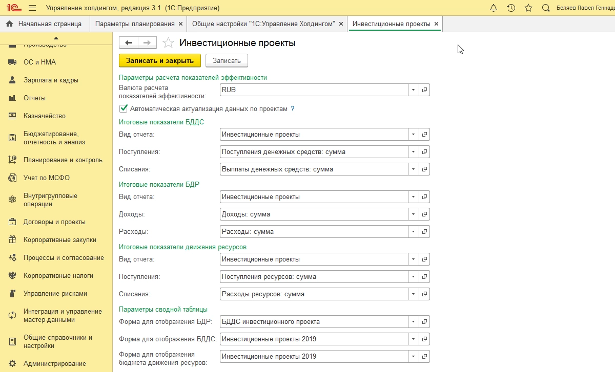 В роли ресурсов инвестиционных проектов служат разные справочники конфигурации (например, «Сотрудники», «Номенклатура»). Для них есть возможность указать стоимостные и натуральные форматы.