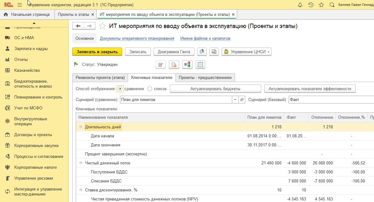 Прикладное решение «1С:Управление холдингом» представляется комфортной платформой для эффективного менеджмента инвестиционных проектов, расчета финансовых показателей и оценки стоимости проекта инвестиций. Система дает возможность дать качественную оценку проекту, определить приемлемую и оптимизированную инвестиционную программу, содержит в себе полный набор работающих инструментов для ее исполнения и мониторинга, а также адекватную для чтения и анализа отчетность. Использование схем оценки инвестпроектов и алгоритмов, предустановленных в системе, и прочих ее возможностей способствует успешному исполнению бизнес-стратегии фирмы.