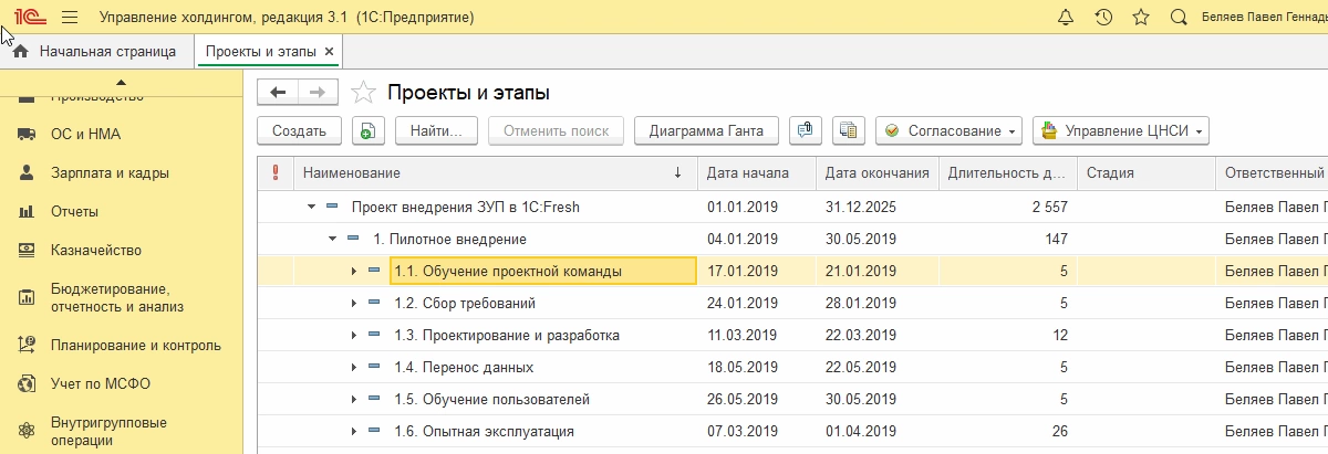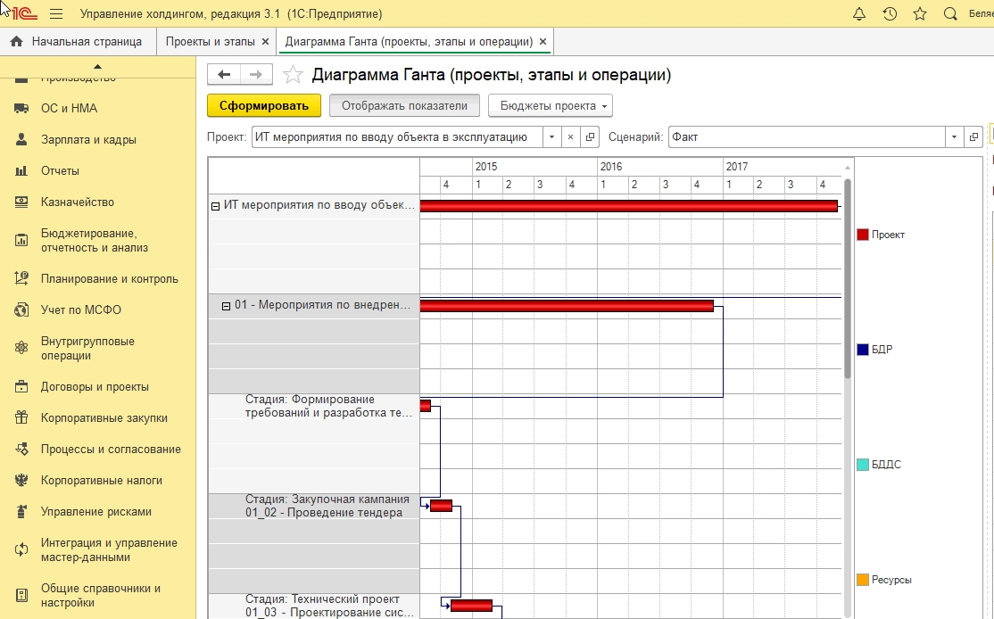 Автоматизация управления инвестиционными проектами от экспертов 1СВ системе 1С:Управление холдингом (1С:УХ) реестр подсистемы устроен в виде иерархической структуры «Проект – Этап проекта – Подэтап» с совокупностью реквизитов для каждого документа.