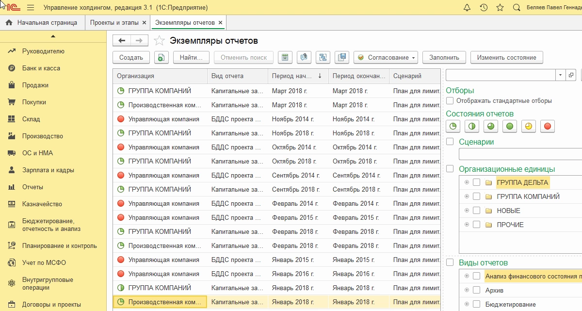 Блок «Инвестиционные проекты» на базе «1С:Управление холдингом» предоставляет ресурс для автоматизации абсолютно всех фаз жизненного цикла стартапа, начиная с инвестиционной фазы, далее – выхода на проектную мощность, и заканчивая анализом итоговых достижений проекта
