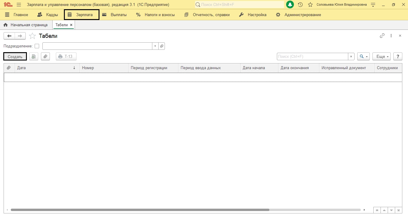 Создать табель в ЗУП можно в двух вариантах: