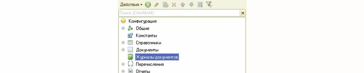 Перед тем как открывать конфигуратор и создавать новый объект метаданных – общий журнал документов, необходимо продумать, какие документы будут объединены им. Обычно разработчики в один журнал помещают одинаковые по смыслу виды документов: заказы, покупки, денежные расходы, продажи и прочее. После анализа действуем по следующему алгоритму: