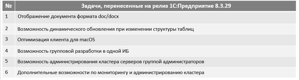 Что уже точно перенесено до версии 1С 8.3.29 и совсем отложено