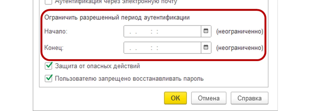 Сейчас в ситуациях, когда требуется точечно запретить пользователям вход в информационную базу, нет возможности заранее настроить блокировку входа с определенной даты. Нужно отключать последовательно все 7 способов аутентификации. В версии платформы 1С 8.3.28 появятся новые механизмы блокировки: опция Аутентификация разрешена и настройка периода разрешенной аутентификации в режиме Конфигуратор - Пользователи.