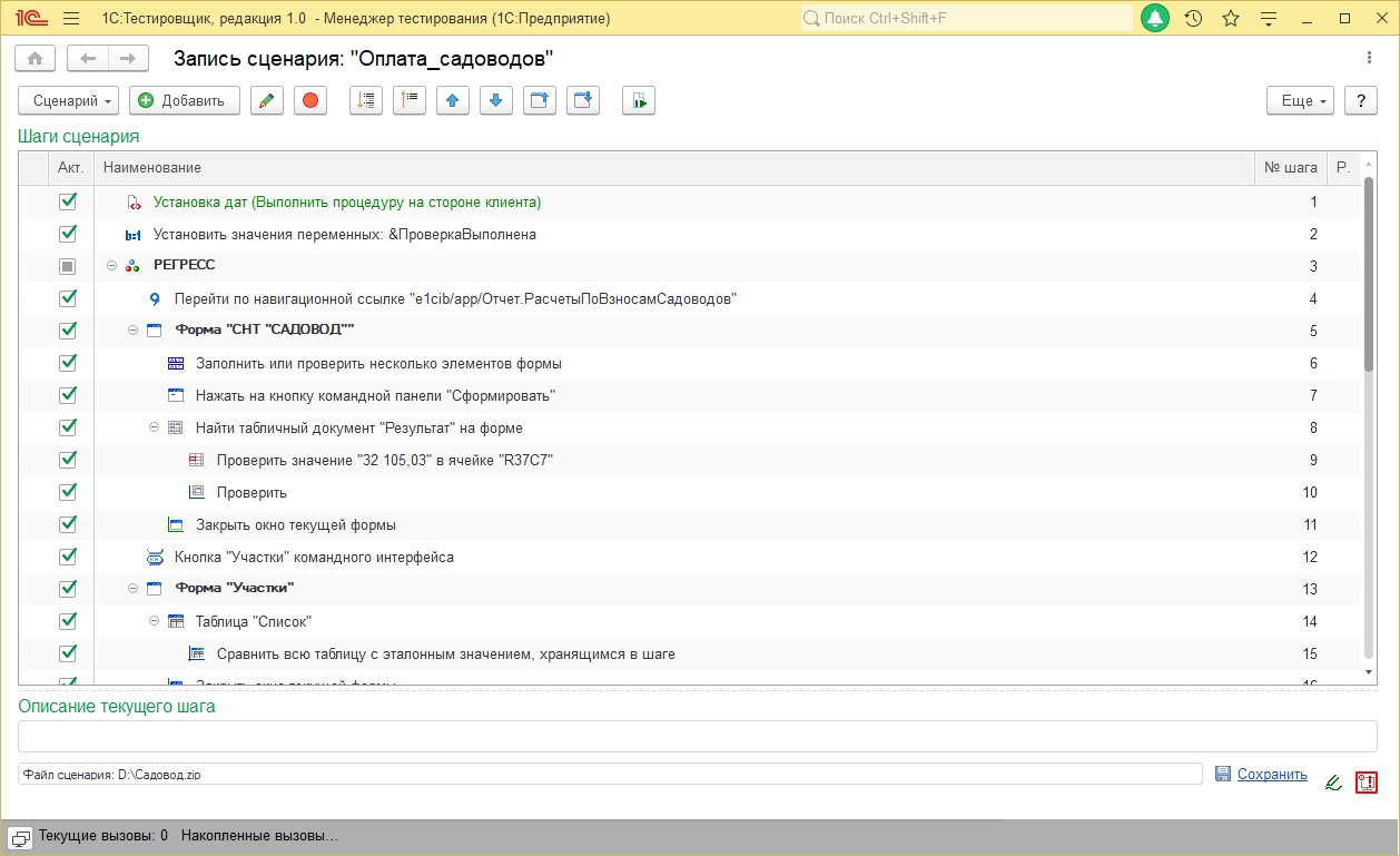 Сценарии позволяют описать тесты функционала, имитирующие ход работы пользователей, в том числе для работы с внешними сервисами, протоколировать работу, а также получать аналитику по ошибкам.