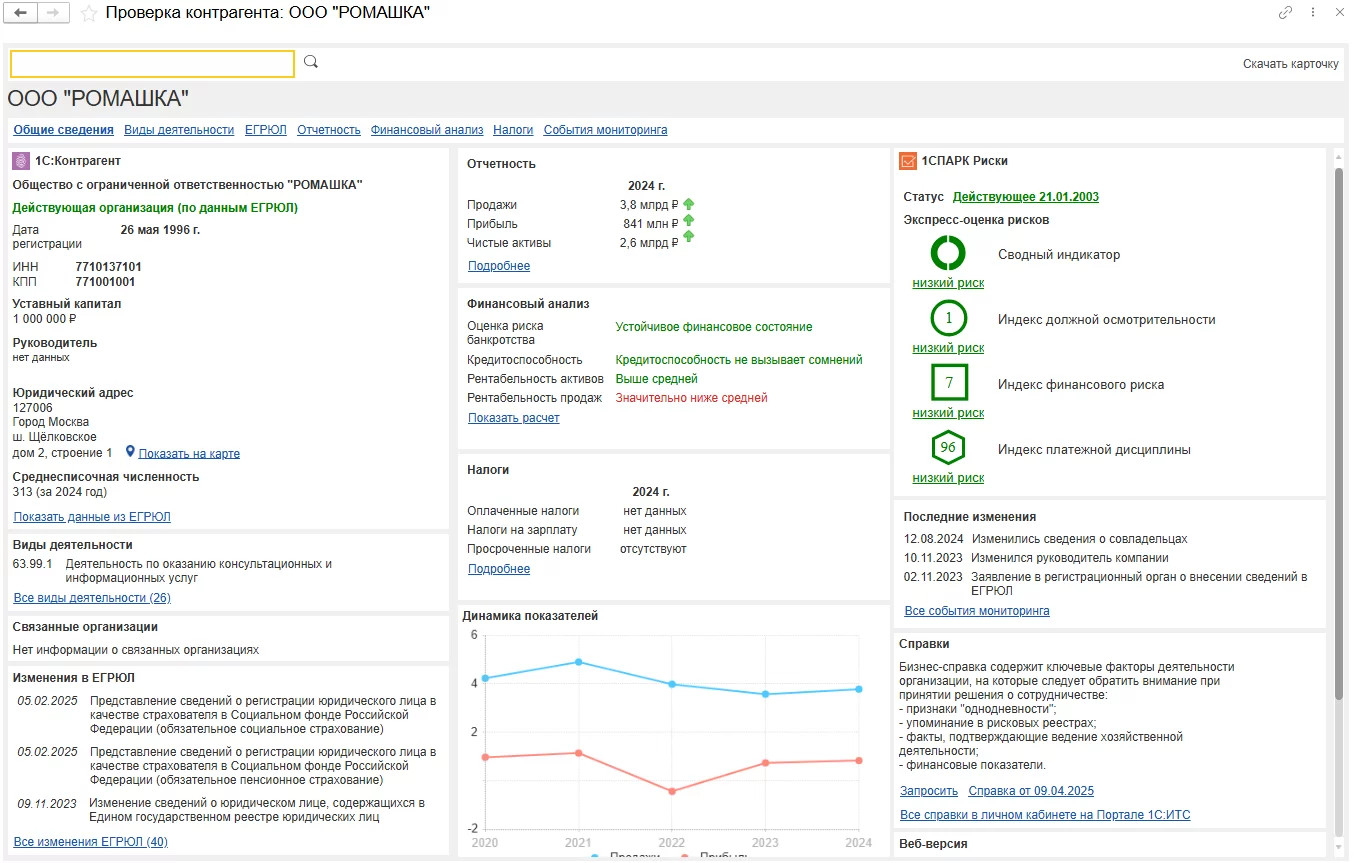 - Информация о последних изменениях из сервиса 1СПАРК Риски.