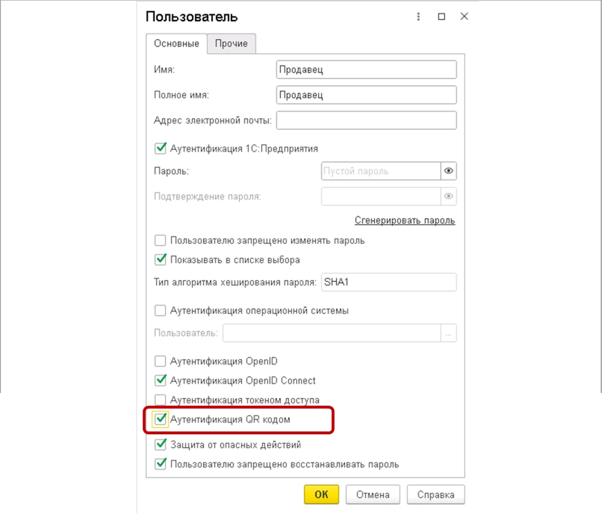 Для начала работы с аутентификацией по QR-коду нужно будет настроить веб-публикацию инфобазы. Подробности настройки будут описаны в документации. После настройки, в тонком и веб-клиенте появится соответствующая опция: