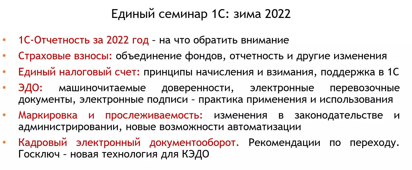 Единый семинар 1С — бесплатное событие для представителей малого и среднего бизнеса, которое проходит ежегодно для пользователей систем 1С в России, странах СНГ и Балтии. С 2020 года — в онлайн-формате.