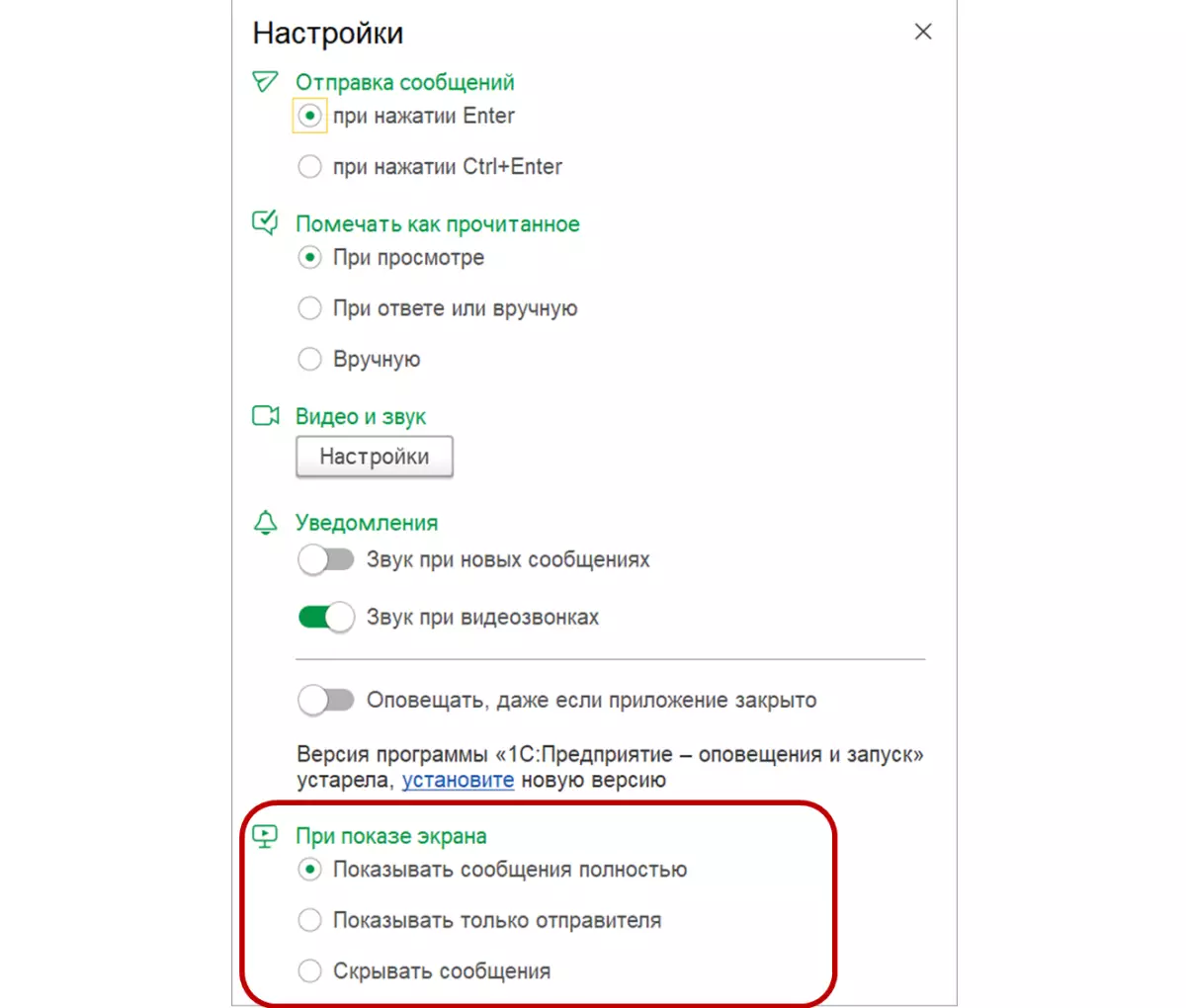 Новая настройка позволит управлять способом отображения сообщений во время демонстрации своего экрана: