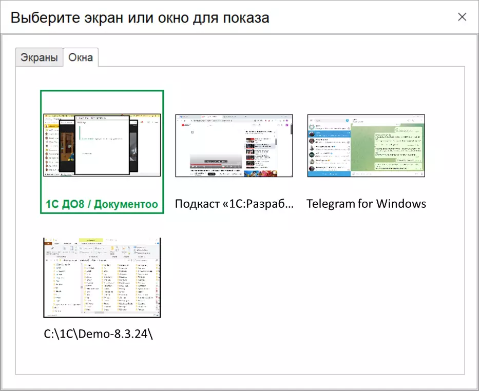 Теперь можно будет демонстрировать не только экран целиком, но и отдельные окна: