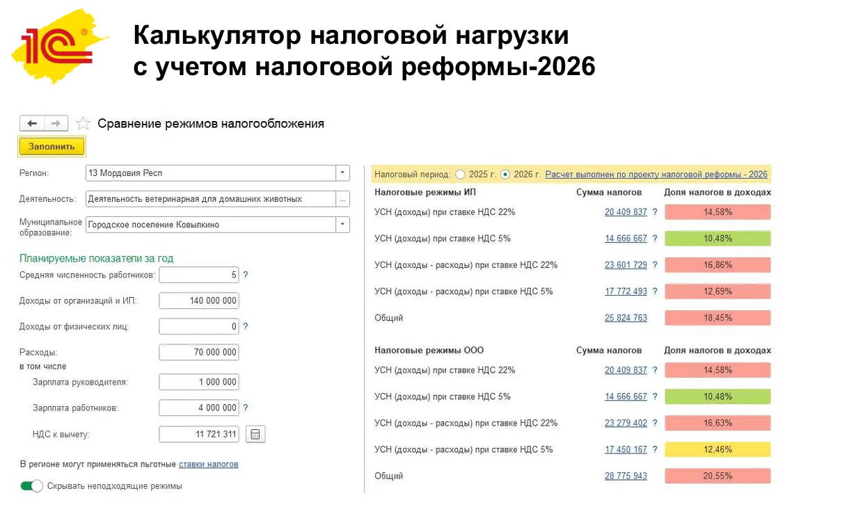 Эксперты фирмы 1С начали с самой актуальной темы про налоги и изменения с 1 января 2026 года: