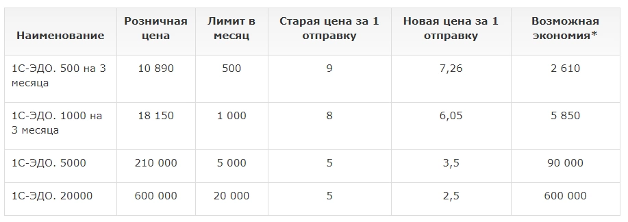 Изменение в ценах сервиса 1С-ЭДО