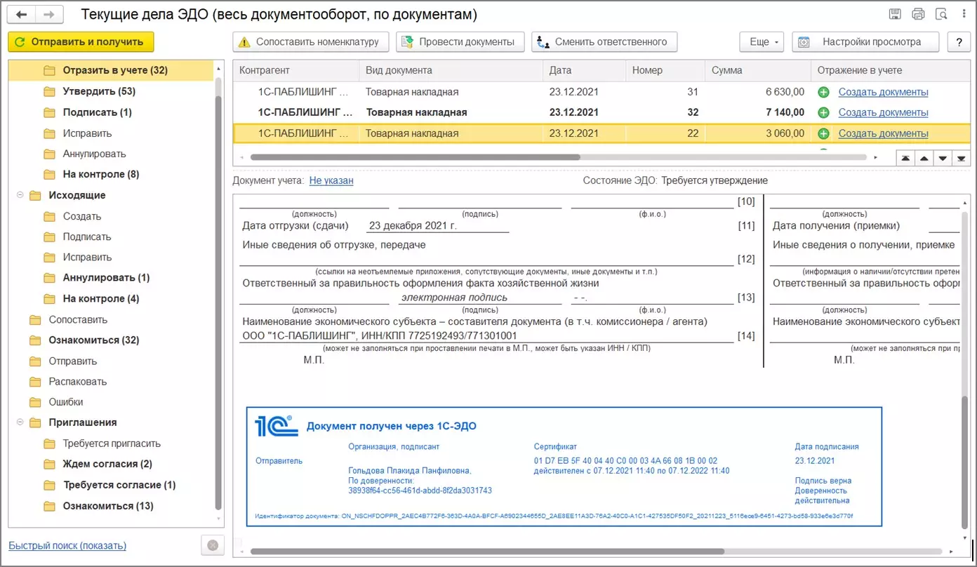 ЭП с МЧД в 1С-ЭДО
