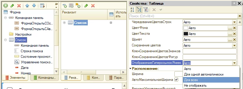 Раньше управлять приоритетом кнопок при автоматической адаптации интерфейса к размеру экрана можно было только на сервере и в мобильном клиенте. Теперь свойство ВажностьПриОтображении поддерживается во всех основных клиентах: тонком, толстом и веб. Это позволяет гибко настраивать, какие команды останутся на виду, а какие будут скрыты в выпадающем меню при нехватке места. Особенно полезно для кнопок в панелях действий строки и множественного выделения в таблицах нового интерфейса.