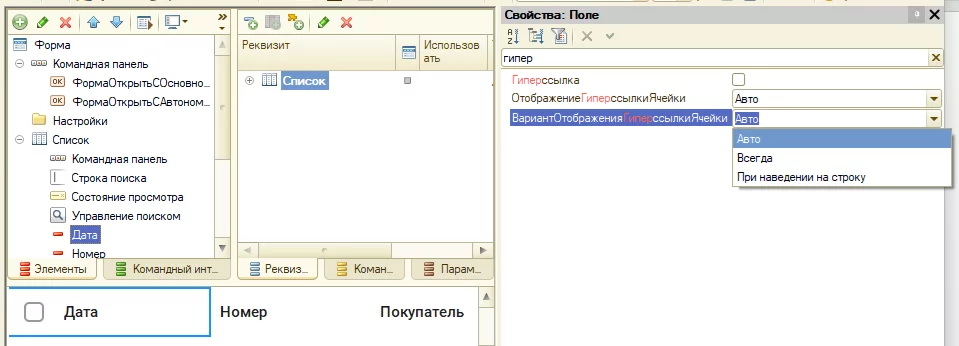 Колонка «Номер» - гиперссылка: