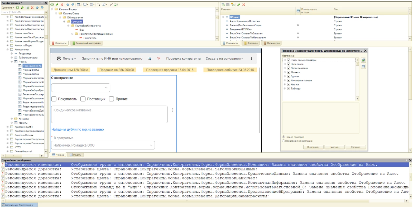 Механизмы конвертации и адаптации под новый интерфейс 1С