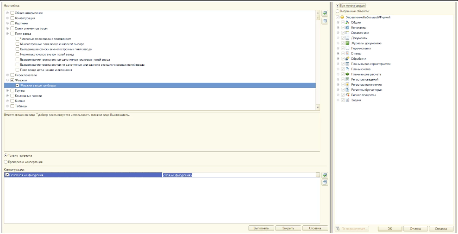 Также будет возможность конвертировать конфигурацию целиком, или выбирать из дерева группы объектов для конвертации.