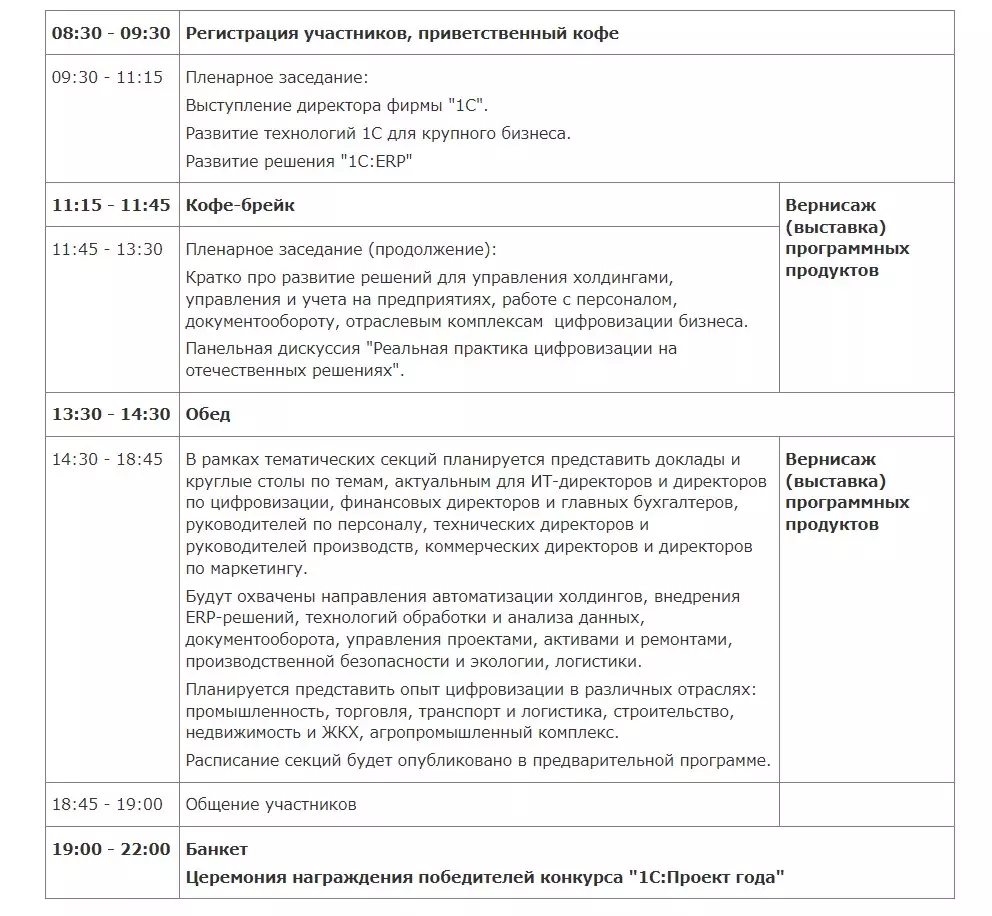 Программа Бизнес-форума 1С:ERP