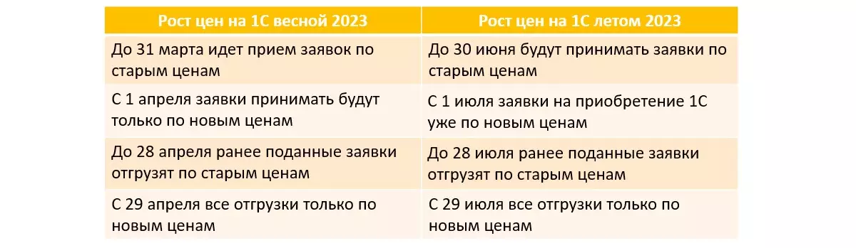Ниже приведем примеры изменения цен на наиболее популярные типовые решения 1С с 01.04.23: