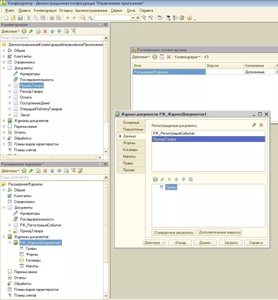 В обновленной версии платформы 1С появится возможность еще больше вносить изменений в расширения. Так, в планируемой версии 8.3.26 позволят создавать свои собственные объекты класса «Журналы документов». В свойстве «Регистрируемые документы» новых созданных журналов можно будет добавить как документы из этого расширения, так и документы из основной базы.