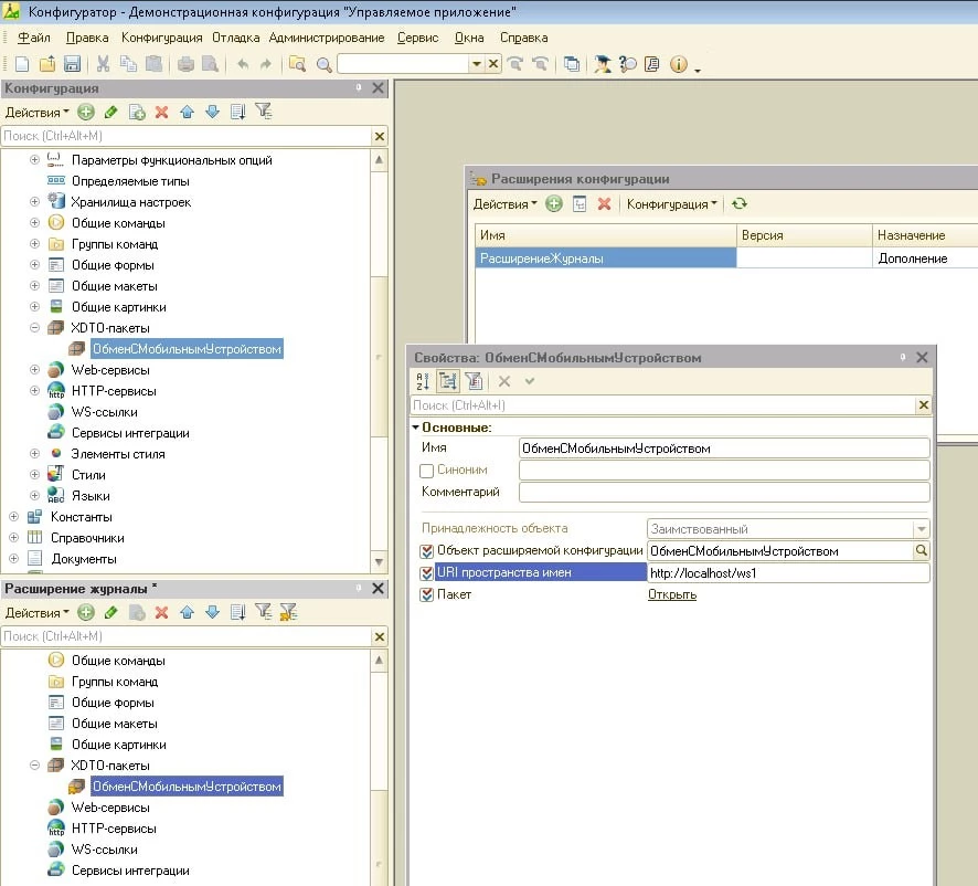 Также в этой версии платформы будет реализована поддержка XDTO-пакетов. В расширения появится возможность вносить изменения состава этих пакетов.