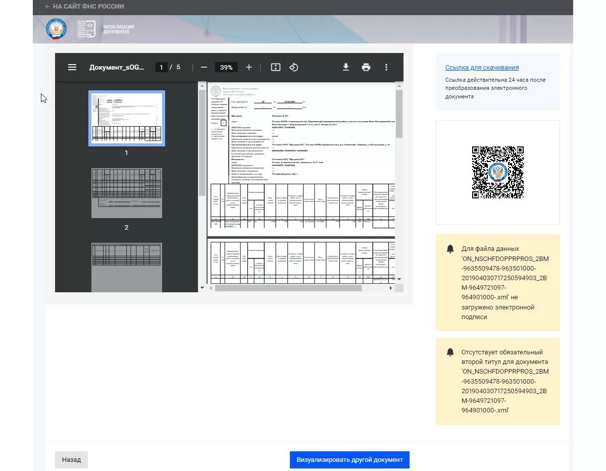 5. В файле PDF проставляется отметка ФНС с указанием даты и времени визуализации.