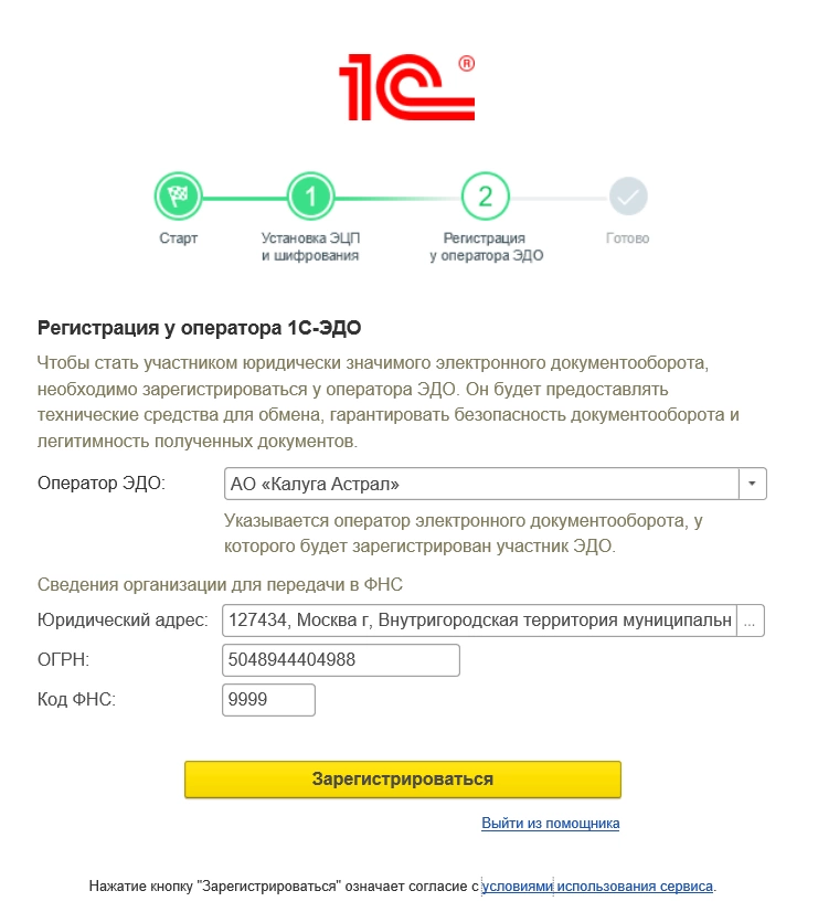 После этого необходимо зарегистрироваться у оператора ЭДО.