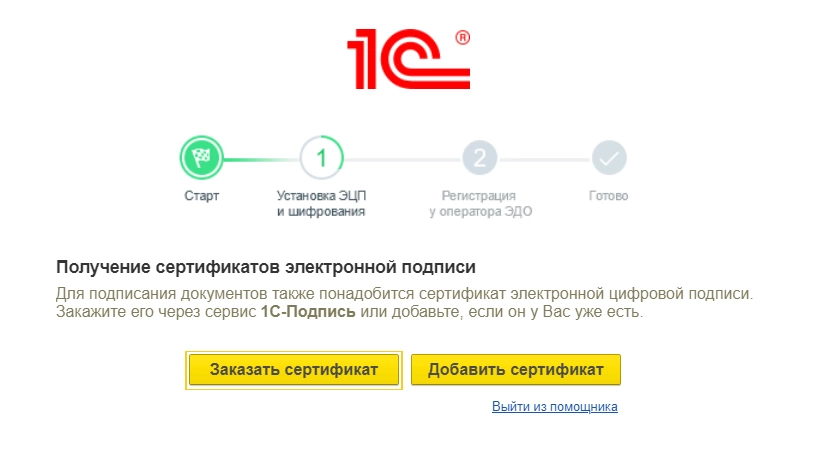 Для подписания документов необходима будет электронная подпись. Ее можно получить либо через сервис 1С:Подпись, либо использовать уже имеющуюся.