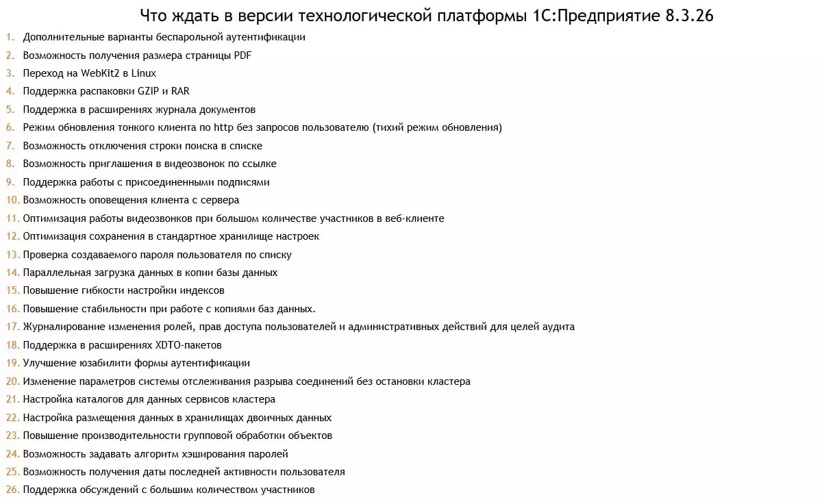 В декабре «обнародован» список выполненных задач для будущего релиза платформы 1С:Предприятие 8.3.26, а также впервые анонсированы планы к реализации для версии 8.3.27.