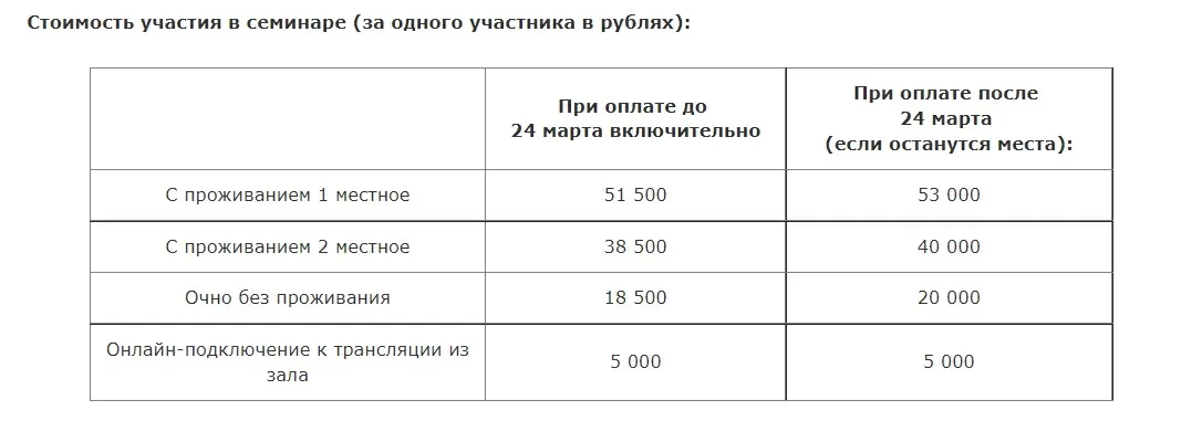 Стоимость весеннего семинара