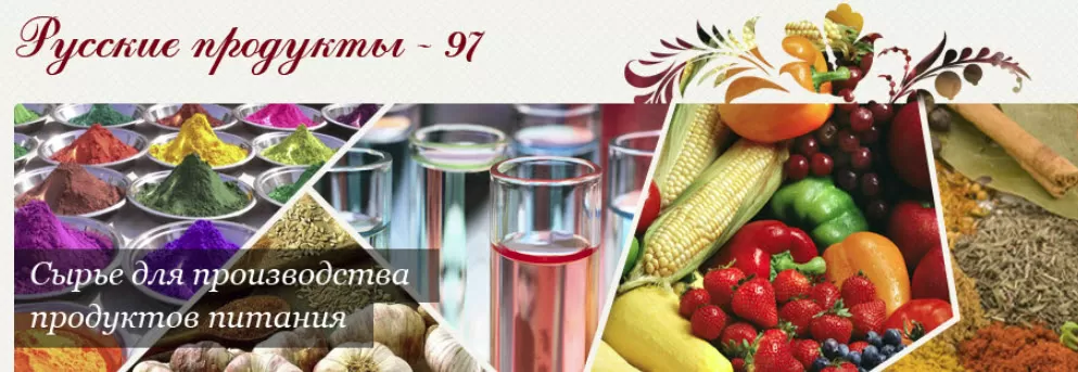 Компания «Русские продукты-97»вышла на рынок в 1997 году. Область деятельности компании распространяется на поставки высококачественных пищевых добавок, ароматизаторов, красителей, консервантов и т.д. Компания имеет статус официального дистрибьютора ряда крупных производителей, в том числе и иностранных, а также сотрудничает с пищевыми предприятиями в части производства продуктов быстрого приготовления.