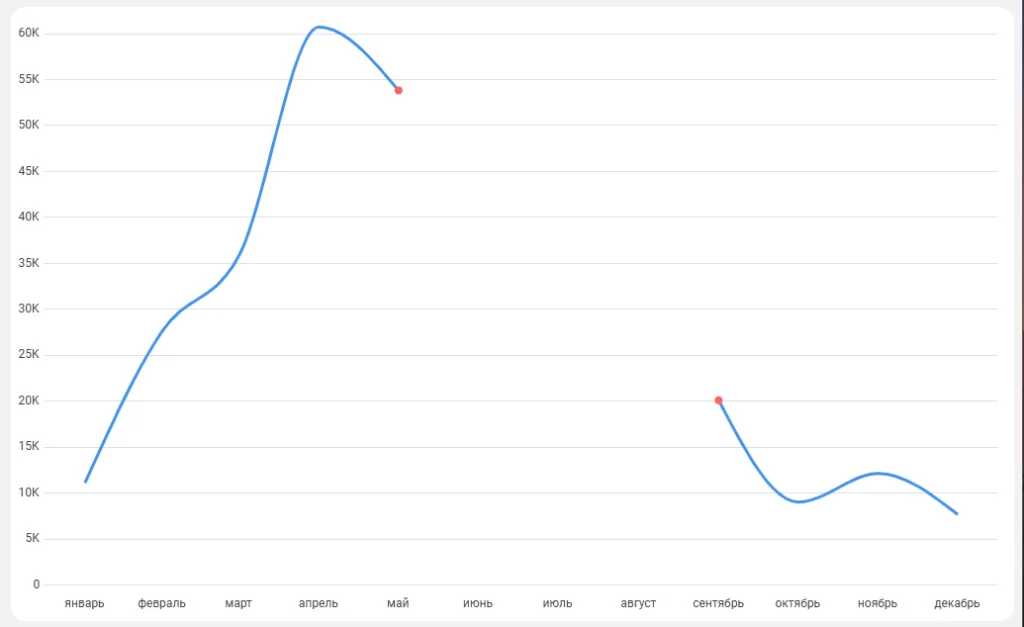 Тип графика «График» получил дополнительную полезную настройку: теперь можно выбрать способ отображения пропущенных значений. Среди возможных вариантов: