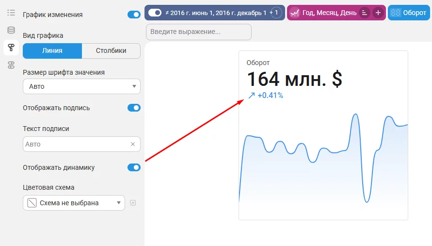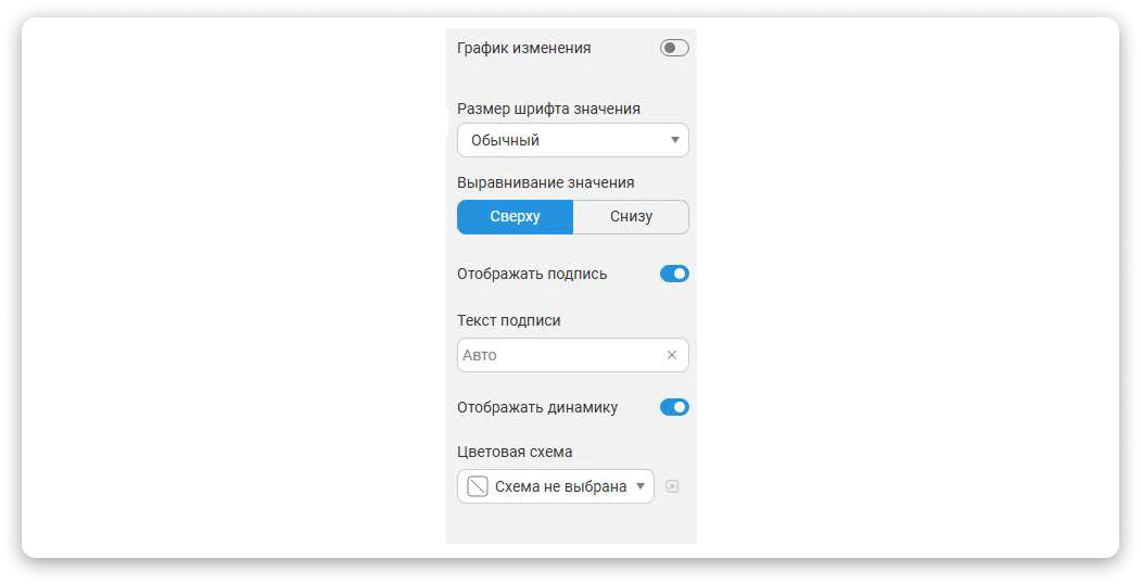 До сих пор показатель динамики (процент разницы между последним и предпоследним значением) появлялся автоматически, даже если это было нежелательно. Теперь такая возможность контролируется вручную, обеспечивая большую гибкость визуализации.