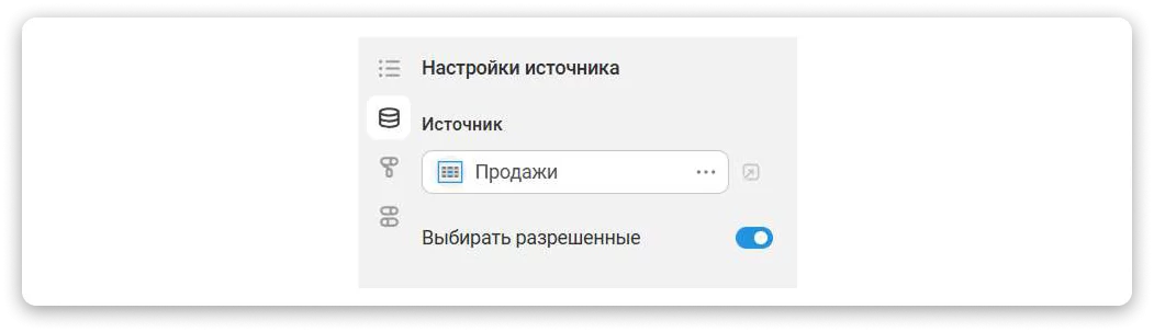 Добавлена новая удобная настройка «Выбирать разрешенные», расположенная в боковой панели редактора диаграммы. Эта опция помогает контролировать формирование отчетов в зависимости от уровня доступа пользователя к исходным данным.