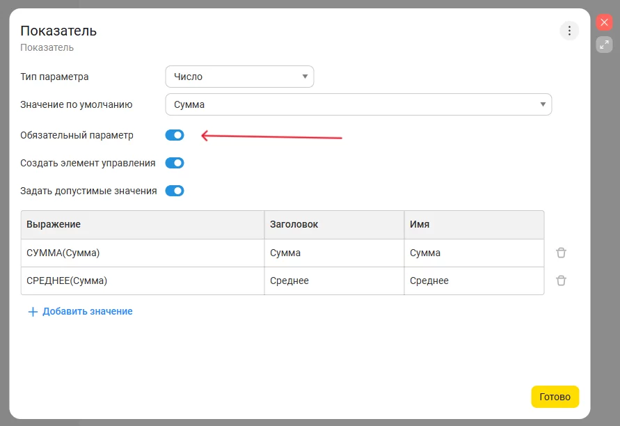 Появилась возможность указывать, является ли параметр отчета обязательным. Ранее незаданные поля могли привести к формированию некорректного отчета. Теперь при отсутствии обязательного параметра отчет не строится, а пользователь получает соответствующее уведомление.