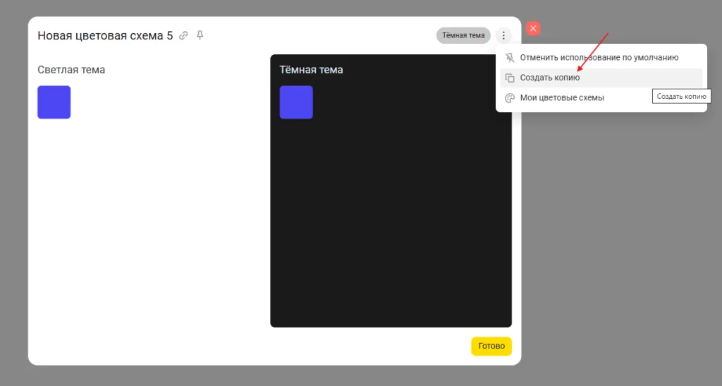 - Создание копий и адаптация. Если какая-то существующая цветовая схема близка вашему вкусу, но требует небольших доработок, вы можете ее скопировать и адаптировать под свои нужды. Таким образом, любые шаблоны становятся отправной точкой для ваших уникальных решений.