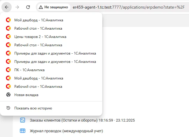 Стали подробнее отображаться названия страниц 1С:Аналитики. Например, на странице редактора диаграммы теперь видно её название. То же самое касается и остальных элементов интерфейса: дашбордов, пользовательских источников, папок и прочих объектов.