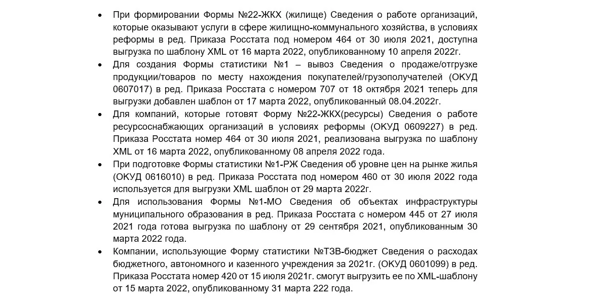 Прочие изменения, доступные в новой версии релиза, касаются дополнений и актуализации форм отчетности.