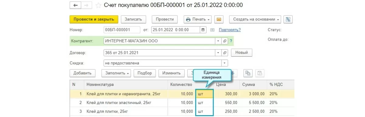 Счет покупателю теперь имеет колонку с единицей измерения