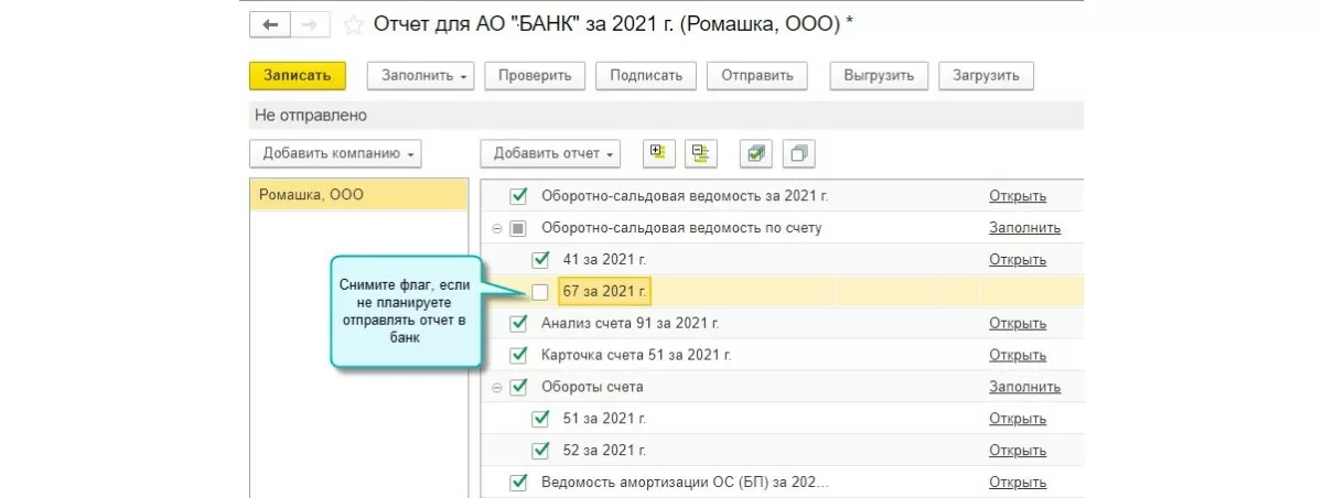 Добавлена возможность исключать отчет из пакета 1С:ФинОтчетность