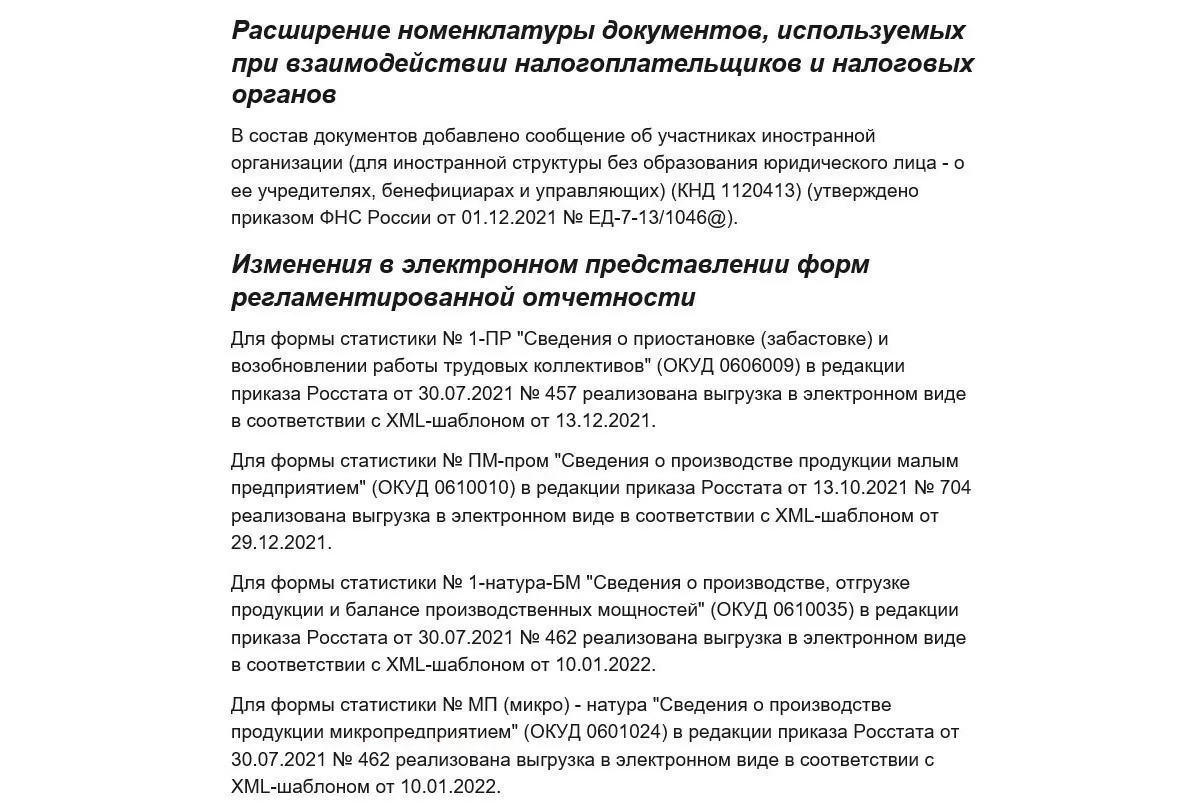 В данном релизе подготовлены нововведения по Приказу ФНС России от 15.10.2021 N ЕД-7-11/903@. И снова виден оперативный подход, когда современный тренд диктует новые процессы взаимодействия организаций и государства.