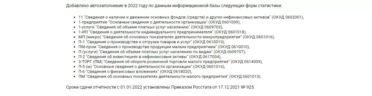 - Для форм статистики в 2022 году было добавлено автоматическое заполнение