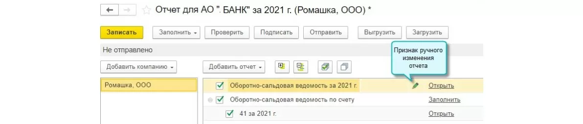 - Ручные изменения отчетов в пакете 1С:ФинОтчетность будут фиксироваться и передаваться в банк