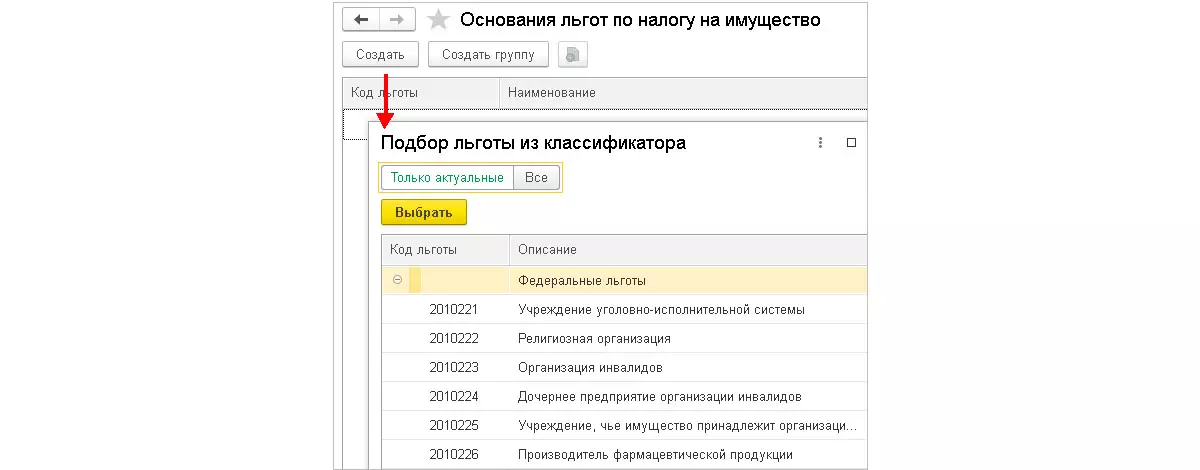 В новой версии добавлен новый справочник. Таким образом, выбор оснований льгот по налогу на имущество осуществляется из классификатора.