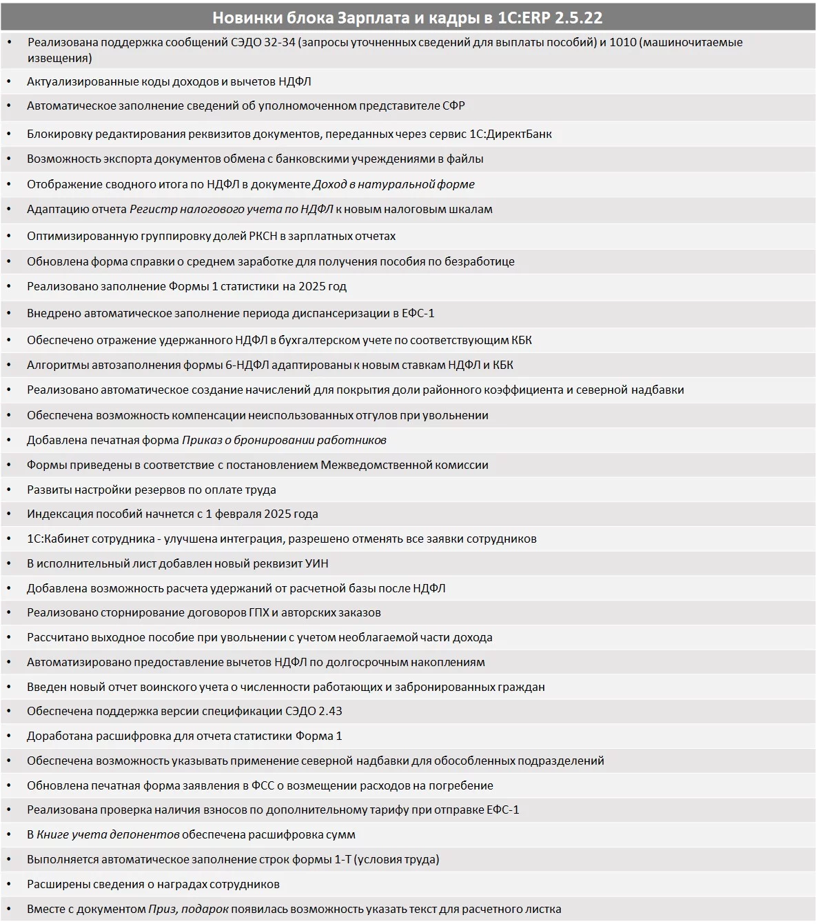 В новой версии 1С:ERP Управление предприятием 2.5.22 внесены изменения практически по всем блокам конфигурации, исправлены ошибки. Разберем ключевые новинки конфигурации.