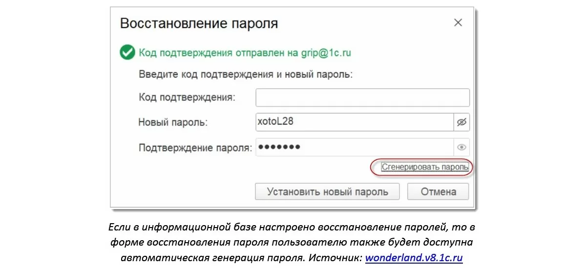 Также, в случае если пользователь забыл свой пароль и решил его восстановить, он сможет сгенерировать новый: