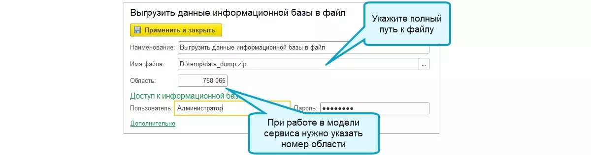 При настройке шага выгрузки данных необходимо указать номер области, где размещена ваша информационная база.