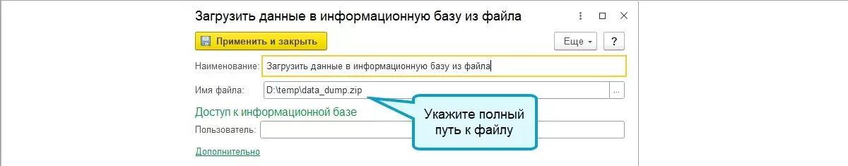 При настройке шага загрузки данных необходимо указать путь к файлу. Версия программы, из которой выгружены данные, и версия программы, в которую загружаются данные, должны совпадать. В интерфейсе версии программы соответствует реквизит «Сборка конфигурации».
