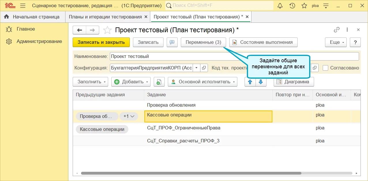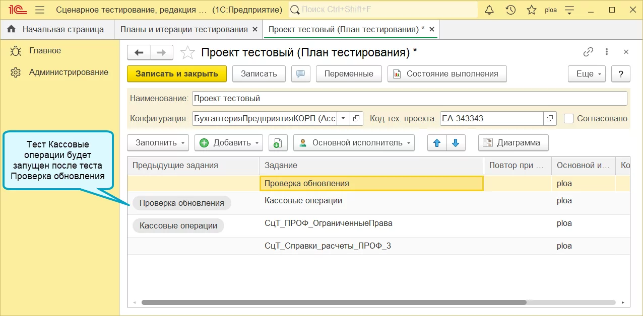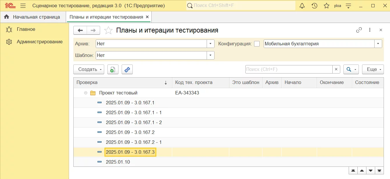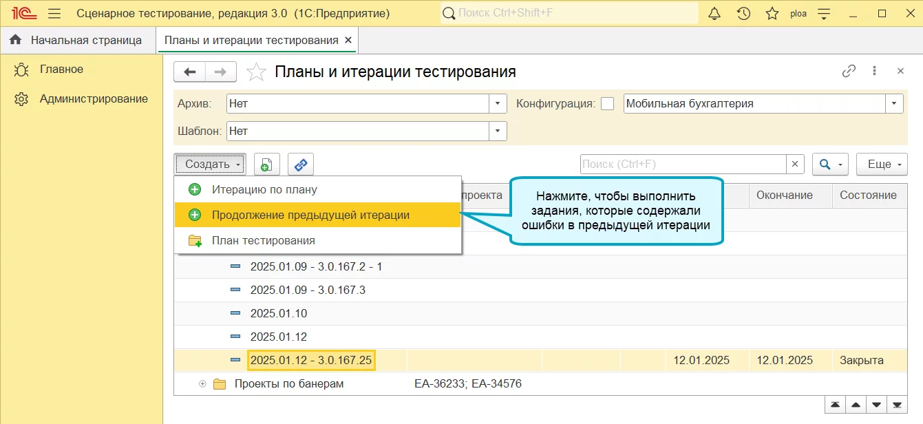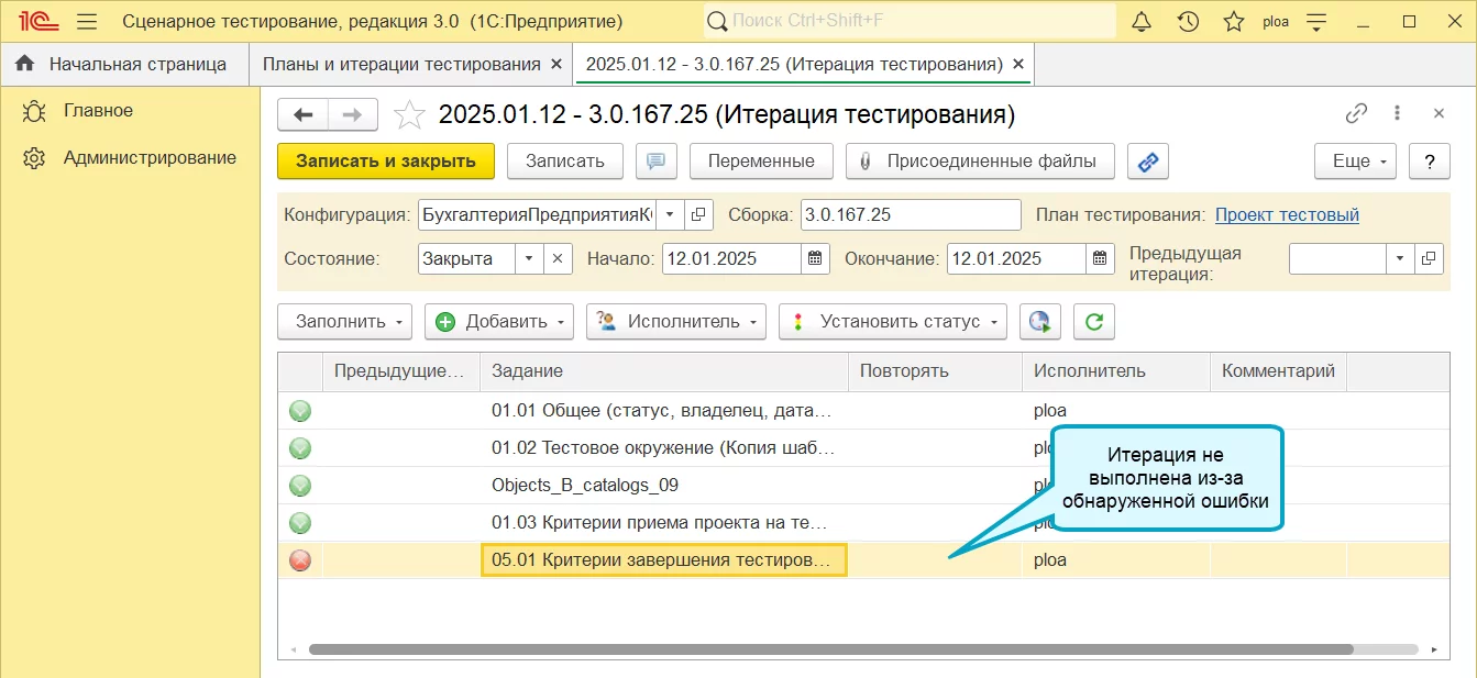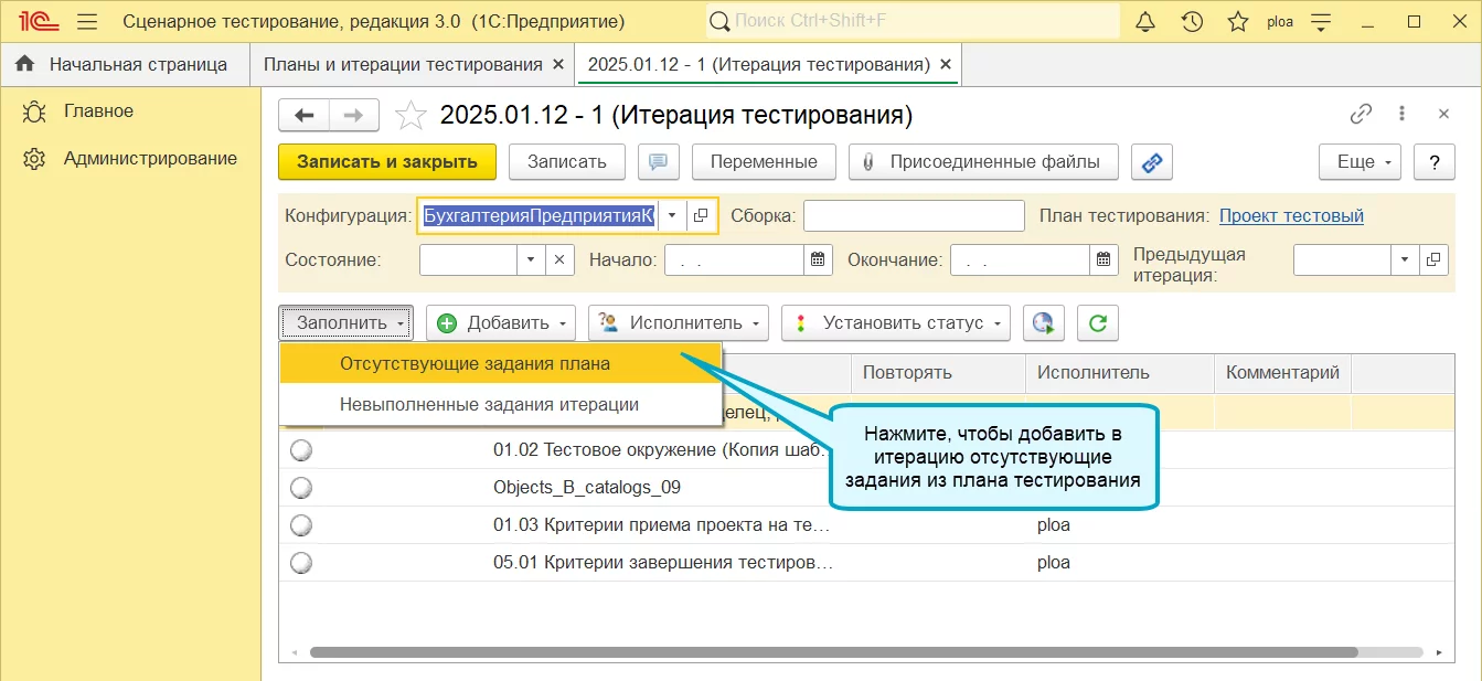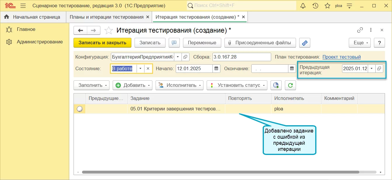 Синхронизация плана и итерации в 1С:Сценарное тестирование 3.0.37
