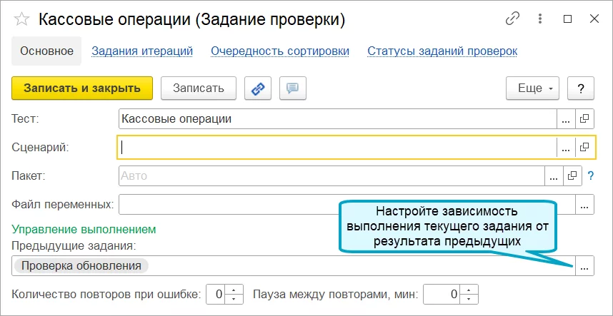 - Повтор заданий при сбоях в 1С:Сценарное тестирование 3.0.37